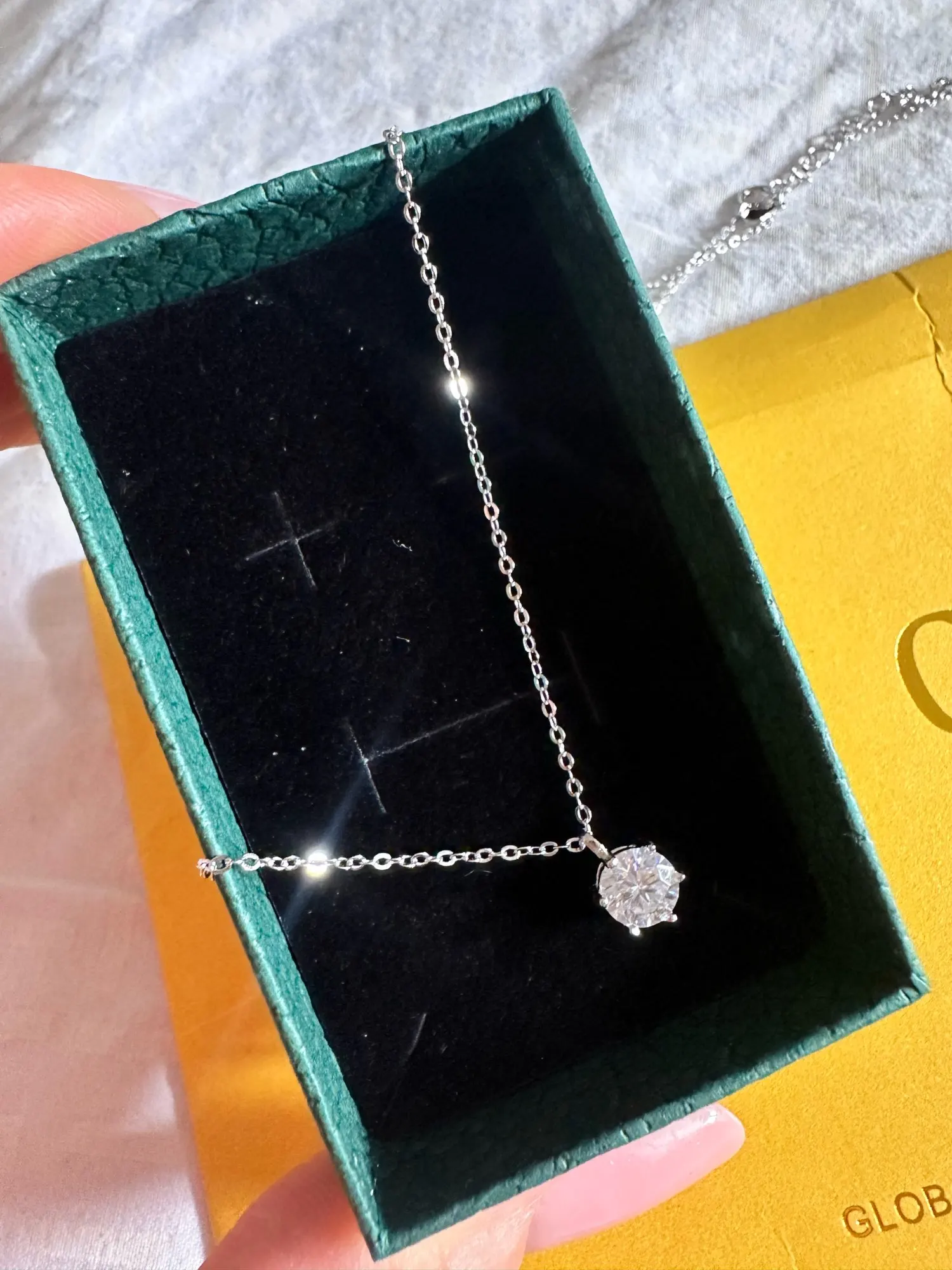 At the center, a stunning D Color, VVS1 clarity moissanite gemstone—available in 1CT, 2CT, or 3CT—delivers breathtaking sparkle. Choose between an elegant O Chain or a classic Box Chain, adjustable from 40–45cm for the perfect fit.